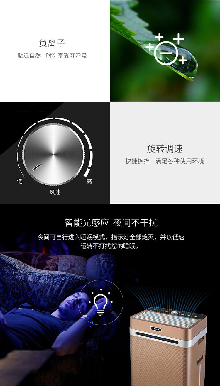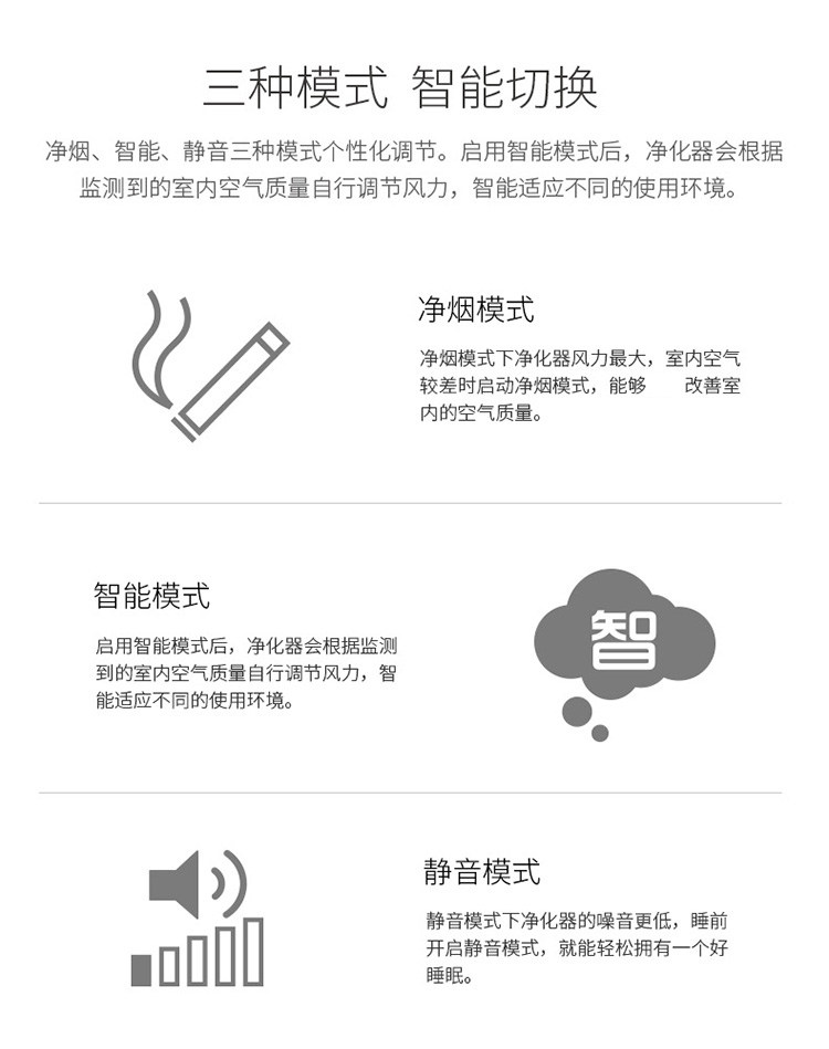 • 功能:定时 除VOC 除花粉 除颗粒物 除甲醛 除烟除尘 杀菌 加湿 除雾霾
