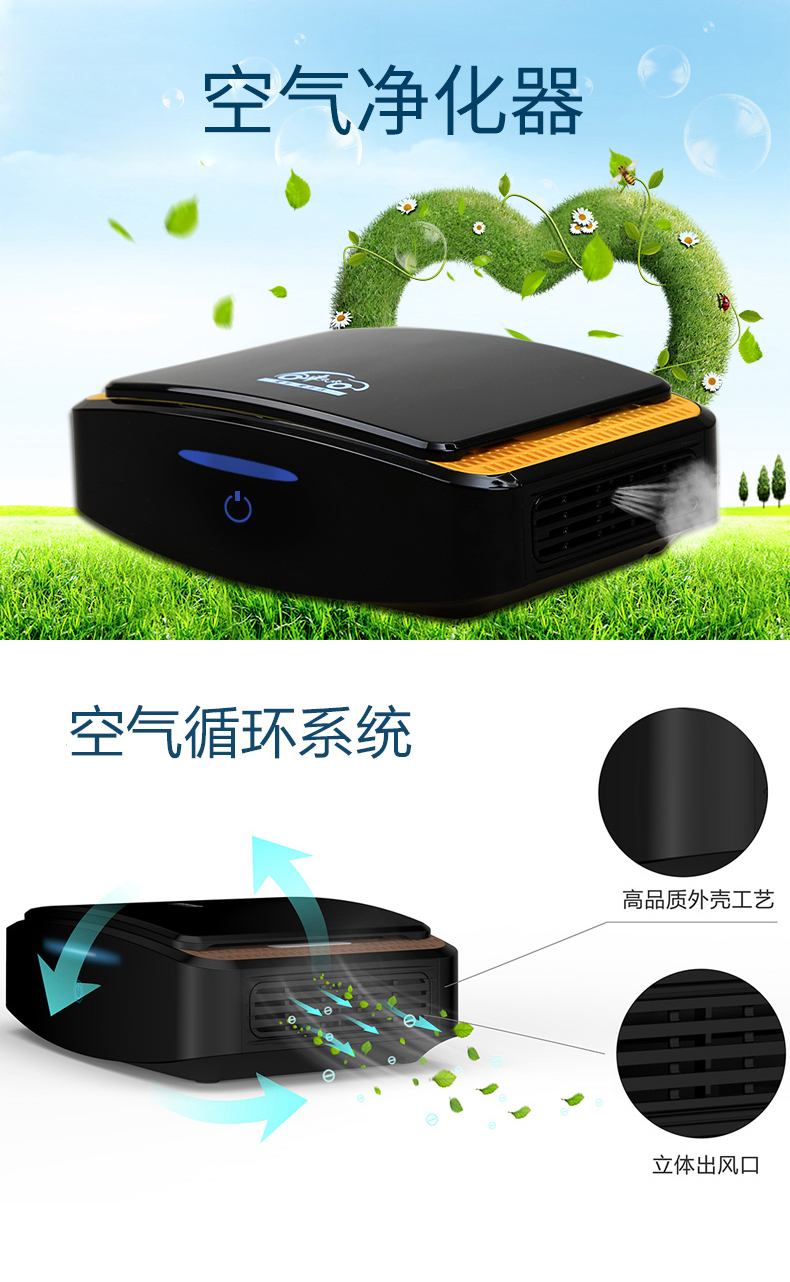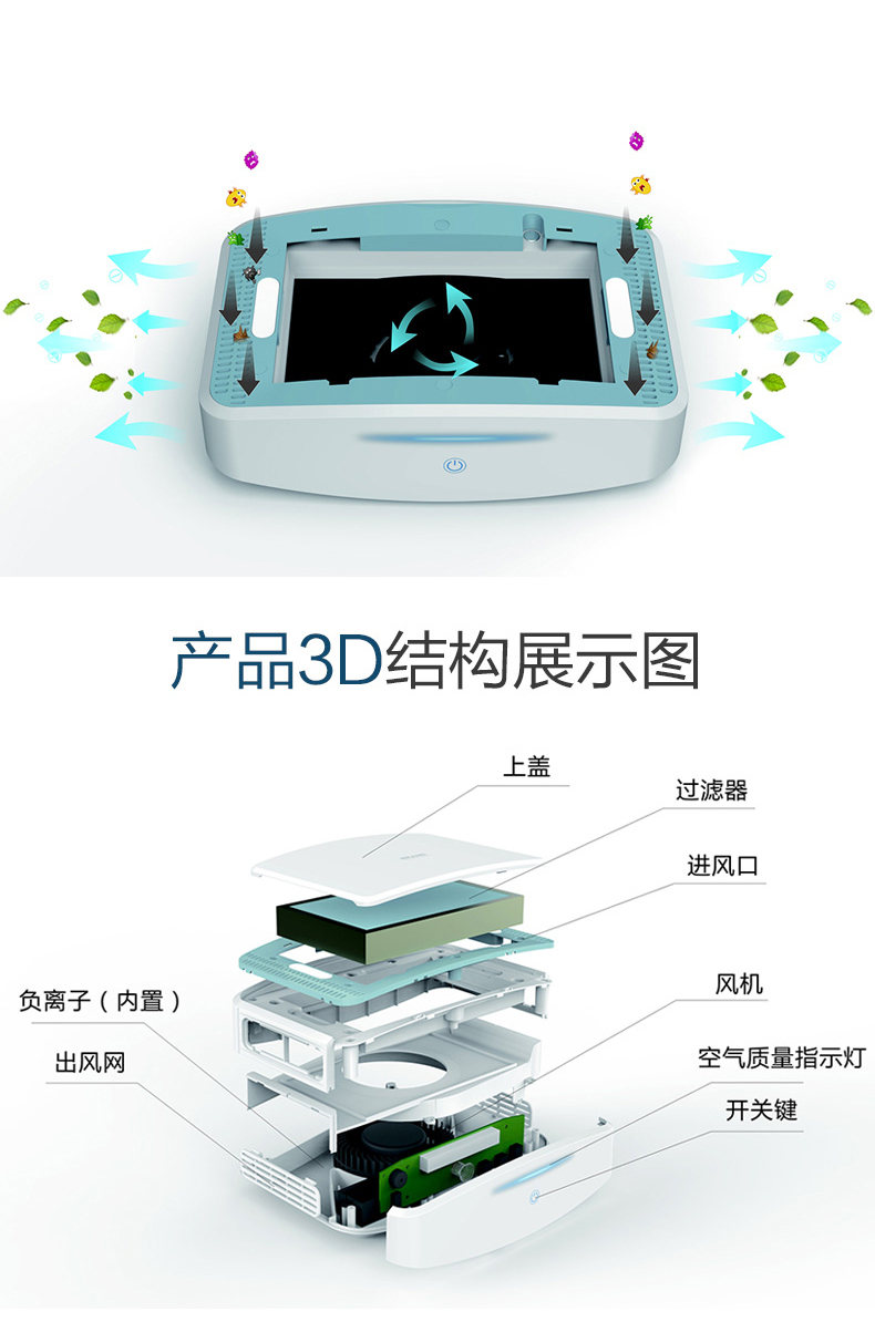 • 净化原理:HEPA滤网光触媒活性炭负离子静电吸附