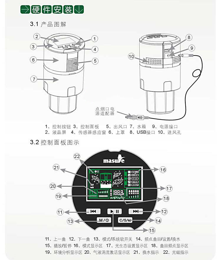 规格:配普通仓净化器直径100mm*高180mm 净重:410G 配磁化仓净化器直径100*高235mm 净重:857G 额定电压:12V 额定功率:3W
