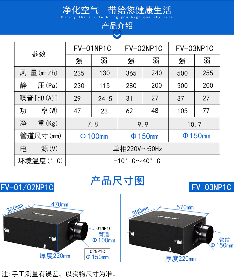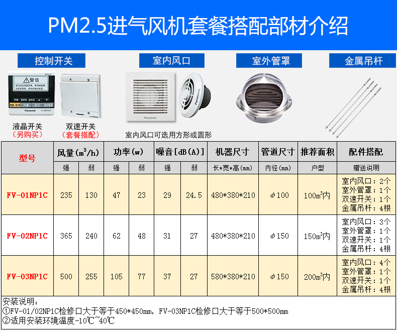 • 颜色分类:FV-01NP1C 风量235【两厅二房/100平内】套餐送配件FV-02NP1C 风量365【两厅三房/150平内】套餐送配件FFV-03NP1C 风量500【两厅四房/200平内】套餐送配件