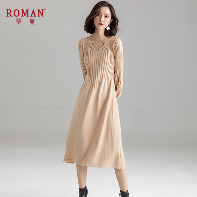 RM罗蔓2019春季新款针织连衣裙女V领宽松灯笼袖长款过膝毛衣裙子 ¥ 169 价格:169 立即购买