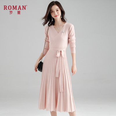 RM罗蔓2019春新V领显瘦天鹅颈百褶针织连衣裙中长款打底毛衣裙子 ¥ 169 价格:169 立即购买
