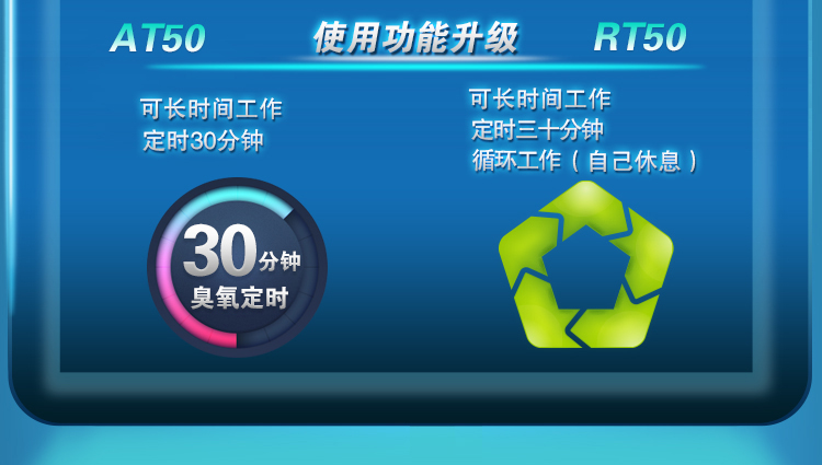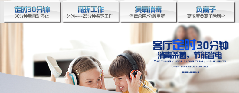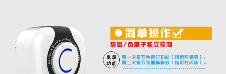 全新升级,增加负离子功能,专利螺旋微晶,使用寿命长,增加了循环模式,工作5分钟停25分钟,适合长时间开启,也可定时工作,同时增加了小夜灯功能,可手动开启关闭,使用方便,家用杀菌去异味效果非常好