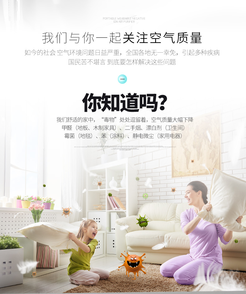 便携式usb充电迷你空气净化器个人小型随身携带负离子防雾霾挂件