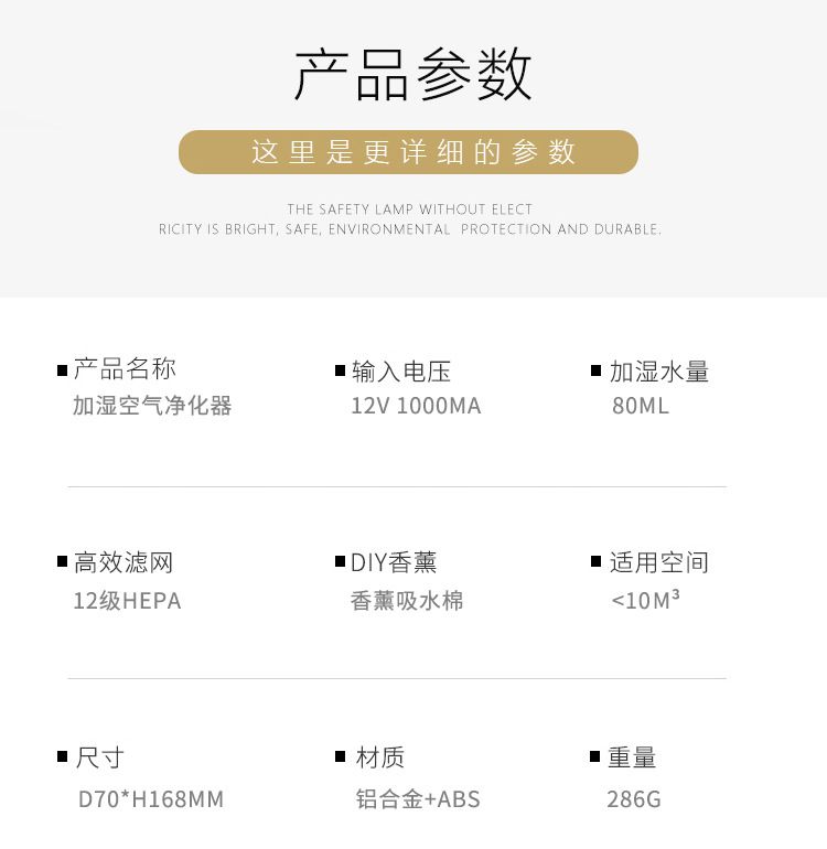 • 功能:消除异味 过滤灰尘 杀菌 吸收TVOC气体 芳香功能 加湿