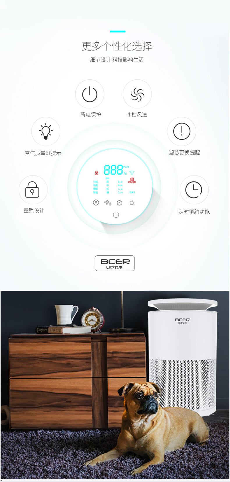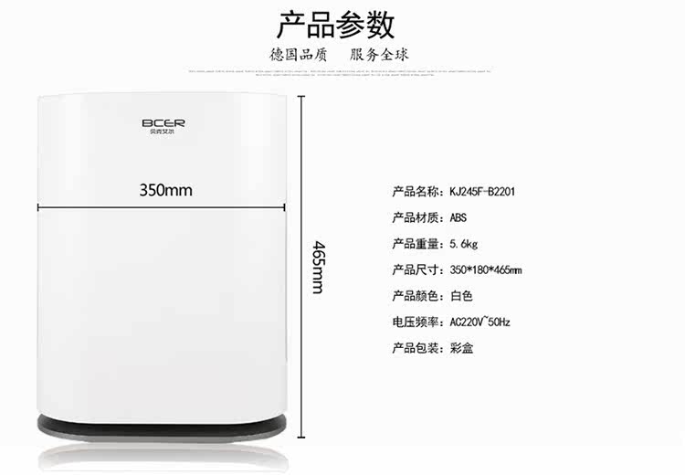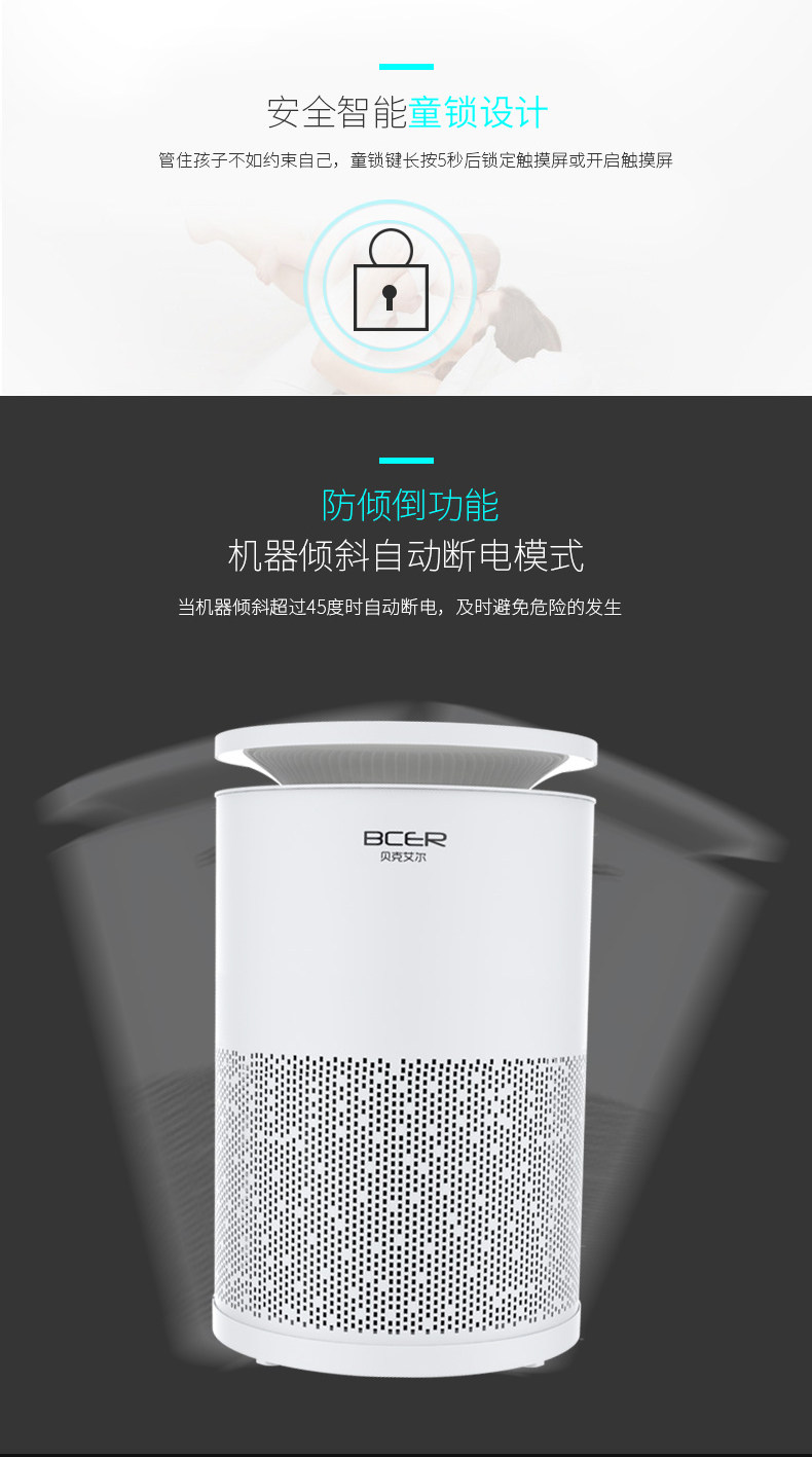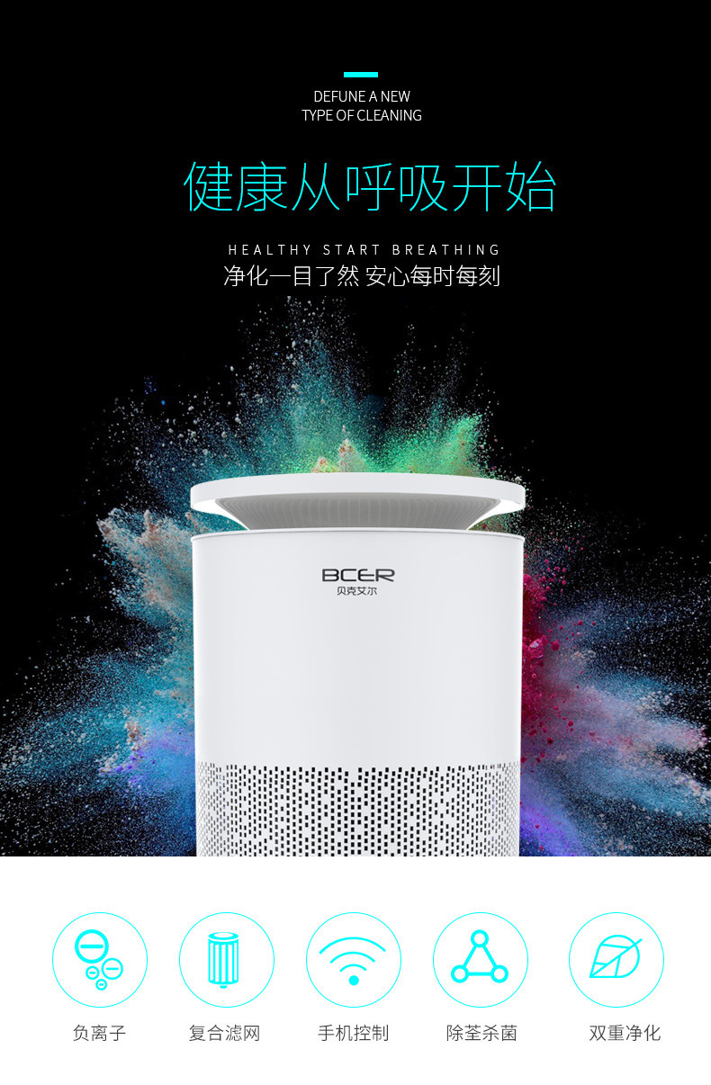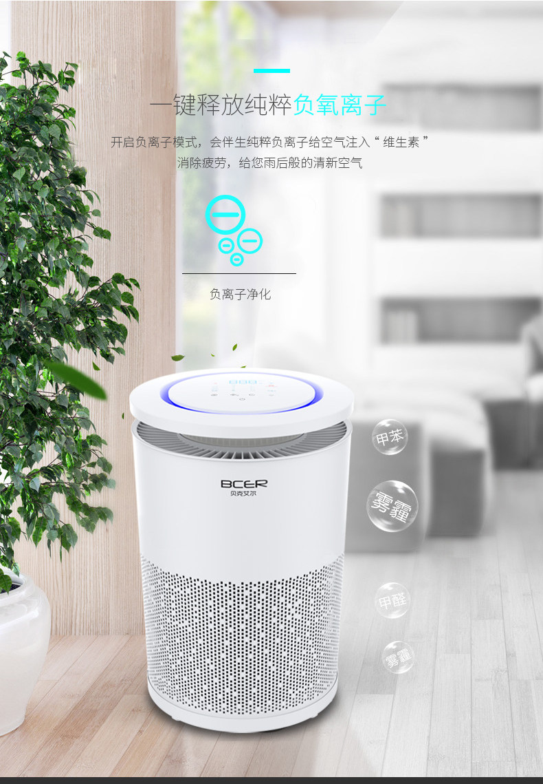 [贝克艾尔官方企业店空气净化,氧吧]贝克艾尔 空气净化器家用卧室除甲醛除月销量35件仅售288元