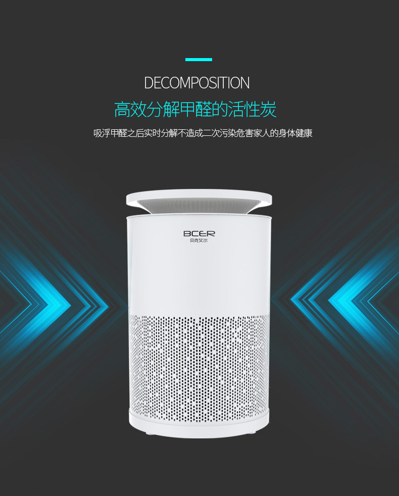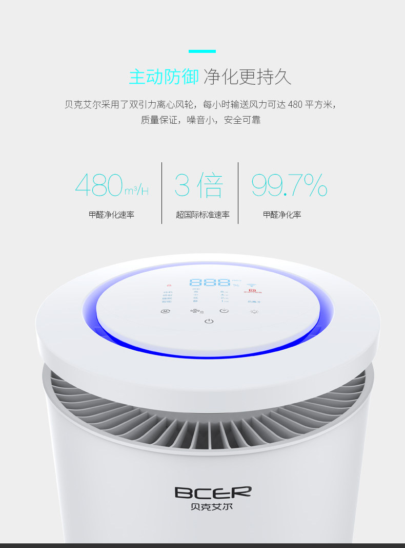 贝克艾尔 空气净化器家用卧室除甲醛除异味除雾霾 pm2.5除二手烟