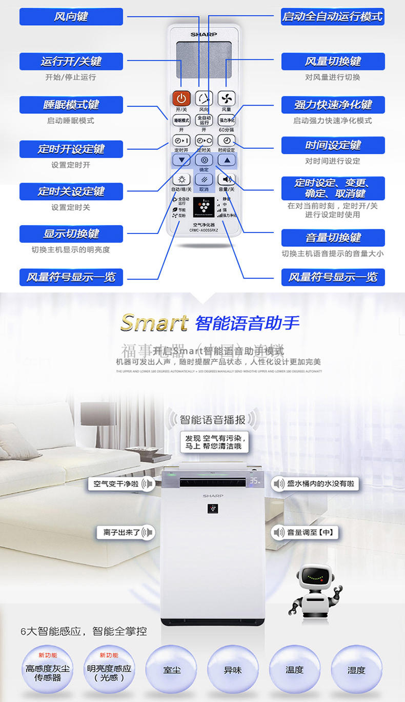[福事电器连锁空气净化,氧吧]夏普空气净化器除PM2.5甲醛异味雾月销量0件仅售2399元
