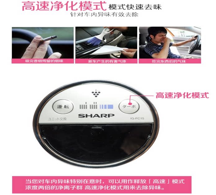 日本EMS夏普车载空气净化器新款IG-HC15 GC15
