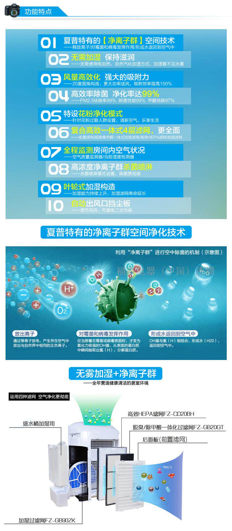 • 功能:除甲醛 除烟除尘 杀菌 加湿
