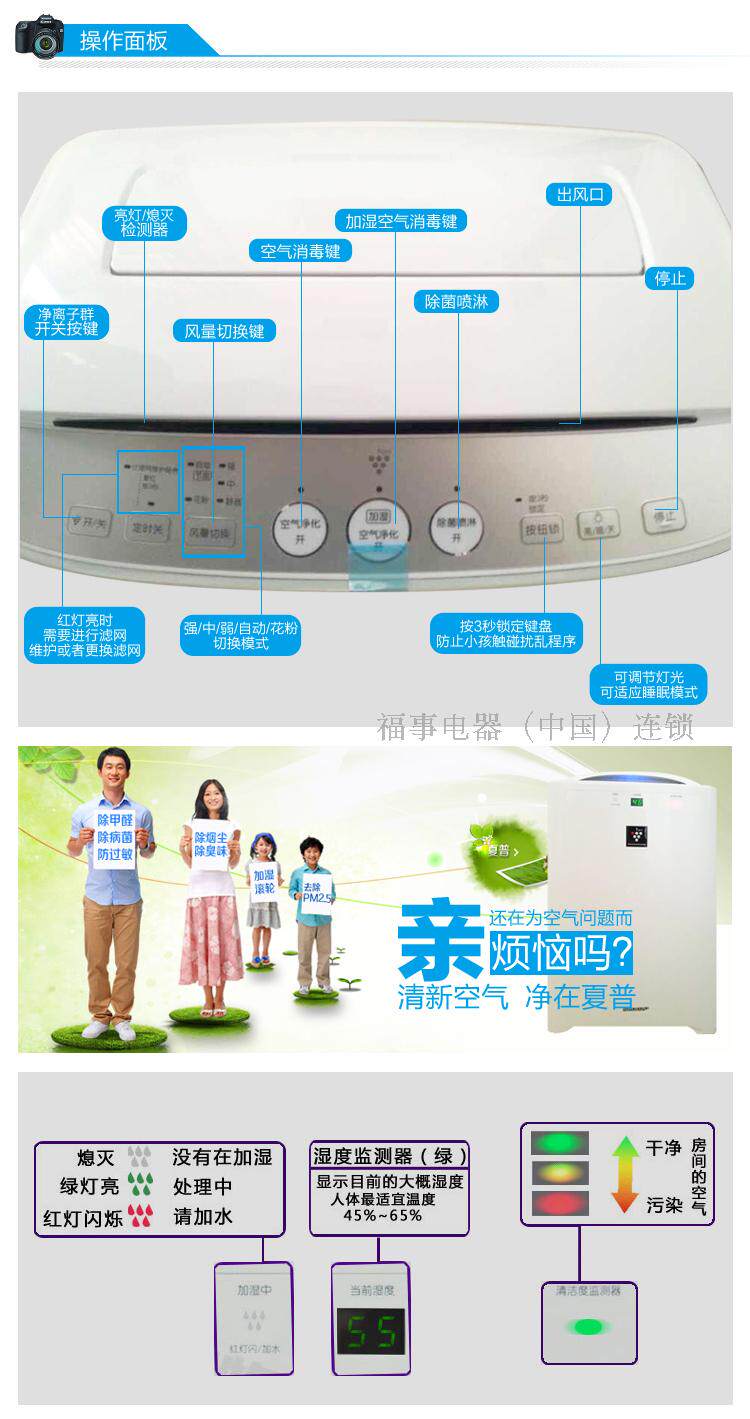 [福事电器连锁空气净化,氧吧]正品夏普空气净化器KC-CD20-W月销量0件仅售1399元