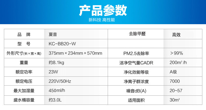 • 产品名称:Sharp/夏普 kc-bb20-w