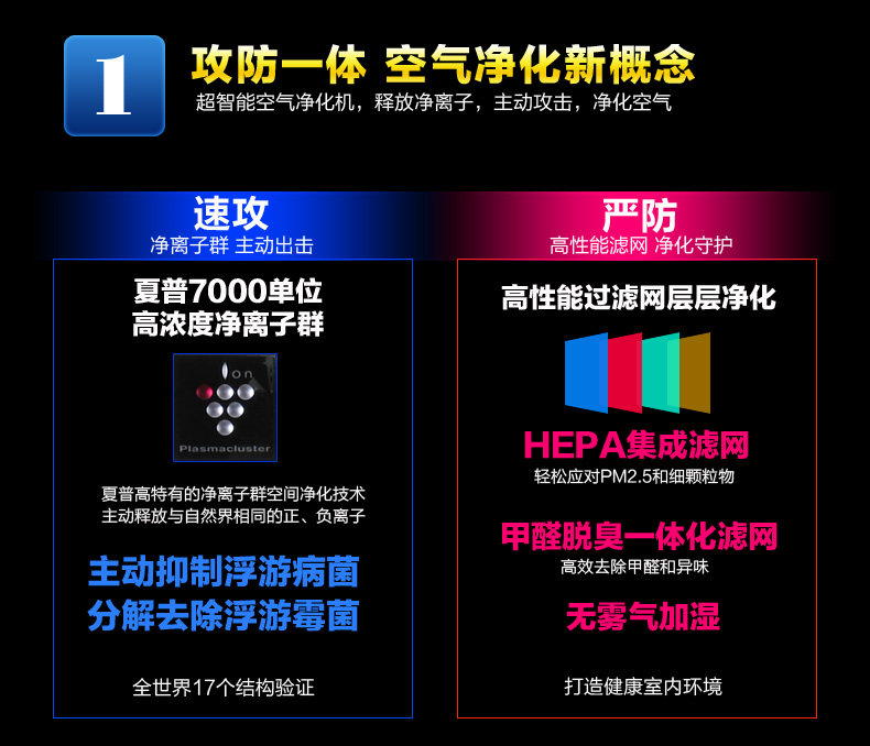 [东莞富兰克林电器店空气净化,氧吧]夏普空气净化器家用加湿除二手烟除甲醛月销量0件仅售2009元
