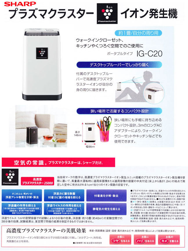 ■离子密度:「強」約25,000個/立方cm、「弱」約7,000個/立方cm