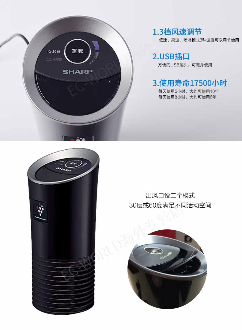[株式会社SAC车用氧吧,空气净化器]日本夏普车载空气净化器 IG-JC1月销量0件仅售466元
