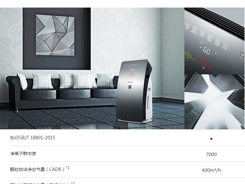 • 空气净化器风量:400 立方米/小时