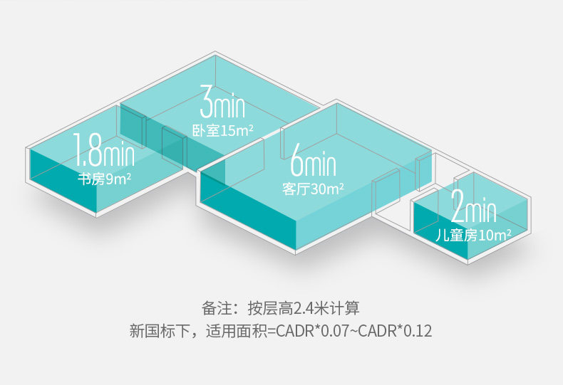 • 甲醛CADR值:350立方米/小时