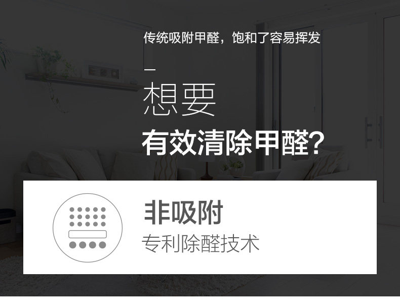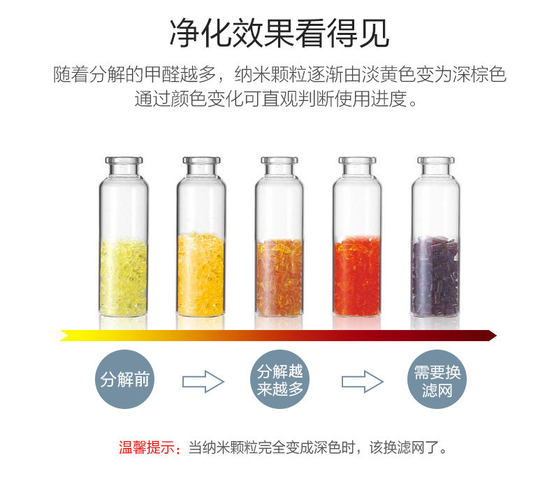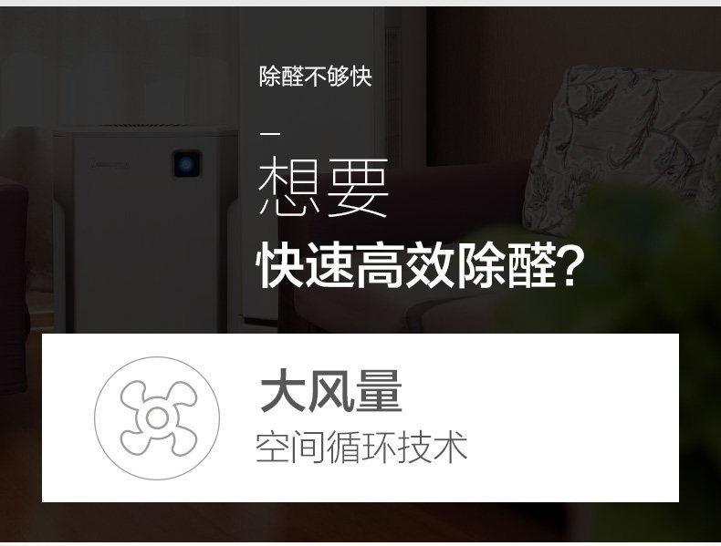 • 甲醛CADR值:100立方米/小时