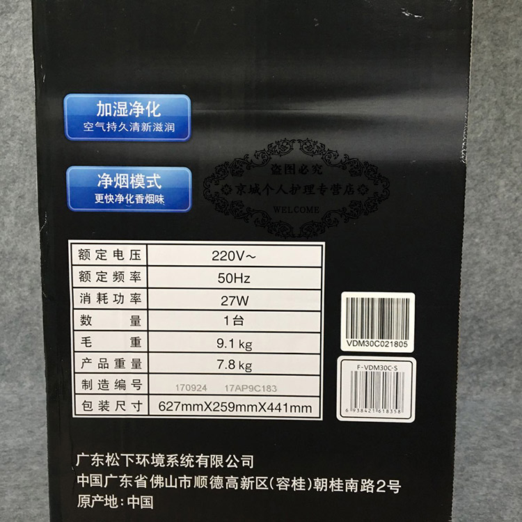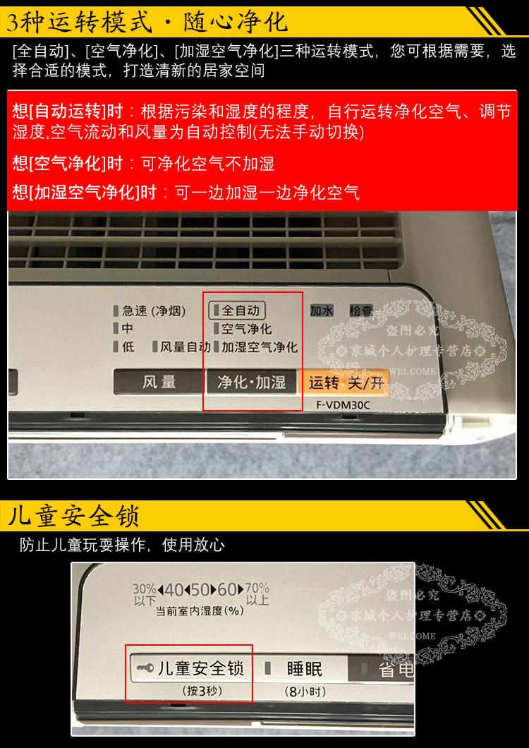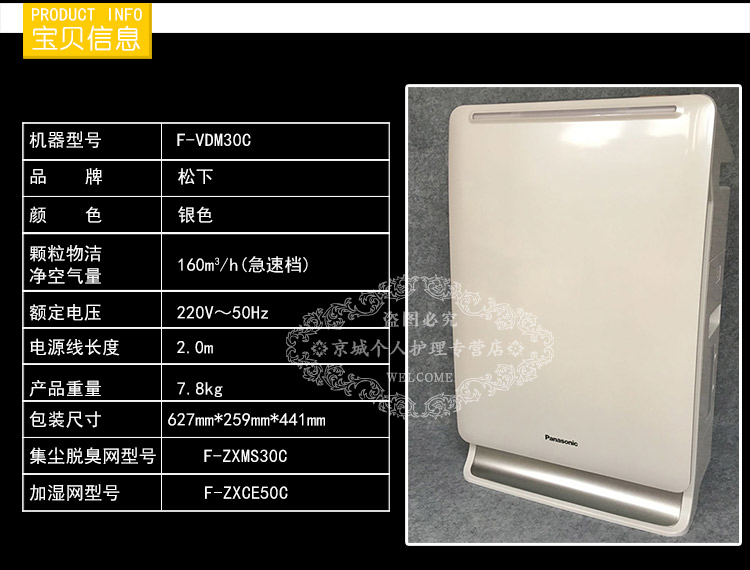 [京城个人护理电器城空气净化,氧吧]松下F-VDM30C空气净化器家用加月销量0件仅售1159元