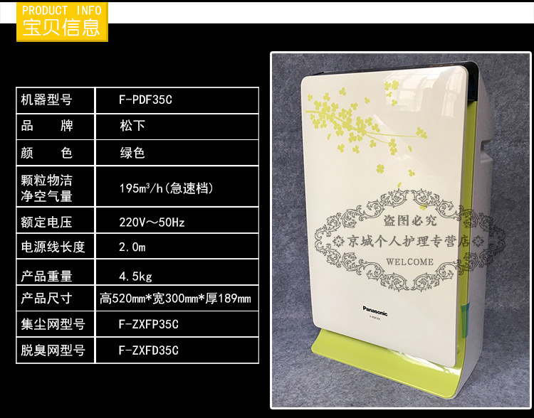 [京城个人护理电器城空气净化,氧吧]松下空气净化器家用除雾霾甲醛PM2.月销量0件仅售499元