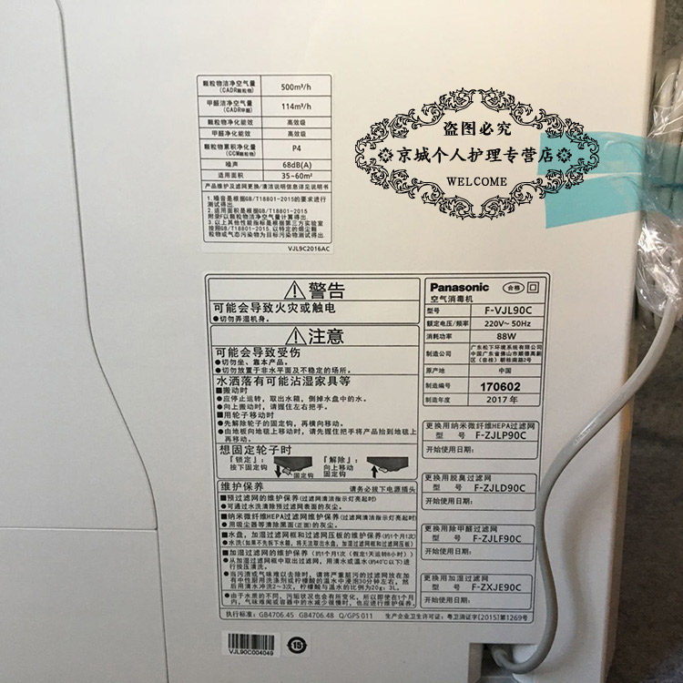 松下空气净化器家用除甲醛除菌PM2.5异味烟味加湿消毒机F-VJL90C
