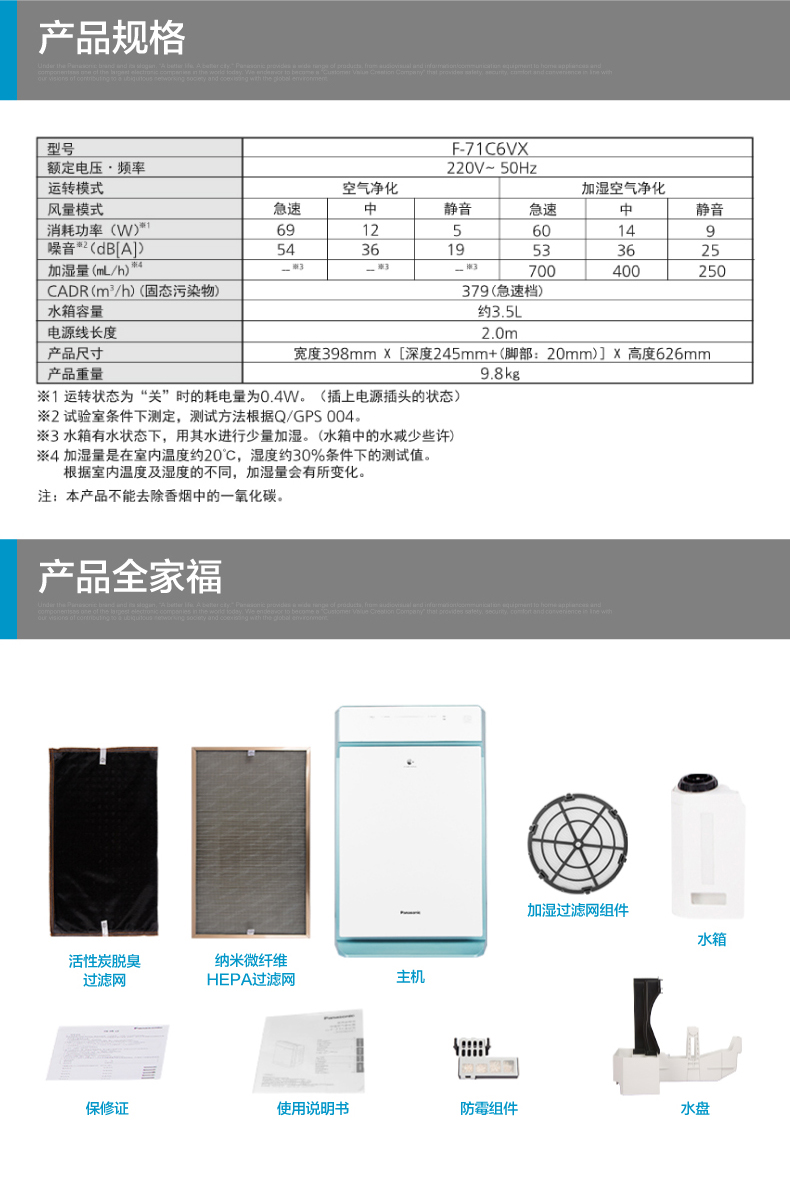 [庞德健康器械商城空气净化,氧吧]松下空气净化器家用卧室加湿71C6V月销量0件仅售2990元