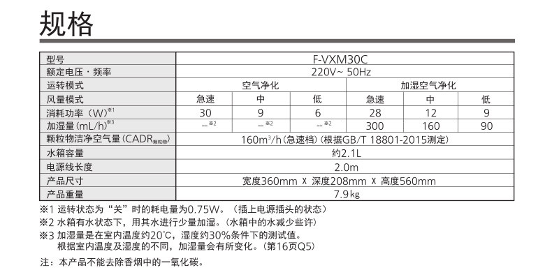 • 产品名称:Panasonic/松下 F-VXM30C