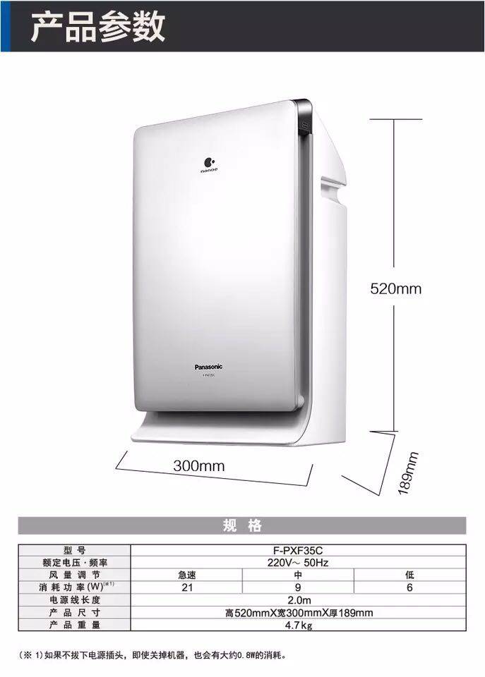 松下/Panasonic空气净化器 除甲醛除雾纳米水离子F-PXF35C-S