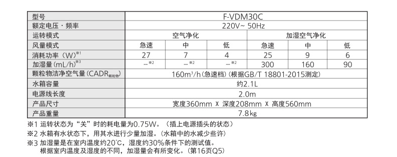 Panasonic/松下F-VDM30C加湿空气净化器家用除甲醛pm2.5正品包邮