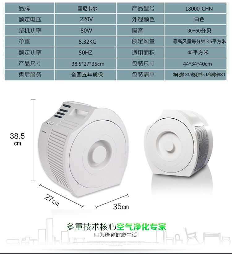 Honeywell霍尼韦尔18000家用办公空气净化器除烟尘PM2.5雾霾 进口