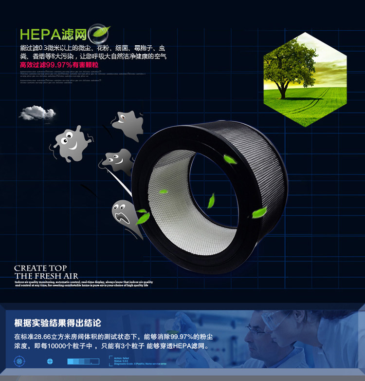 • 功能:除花粉 除烟除尘 杀菌