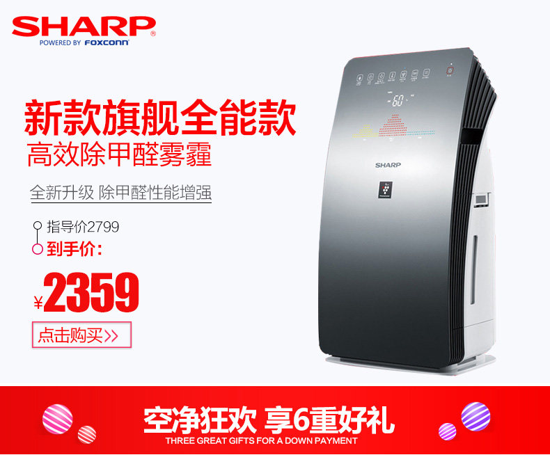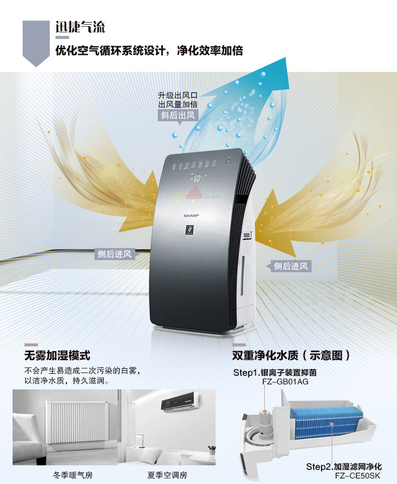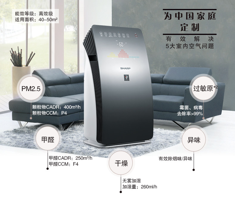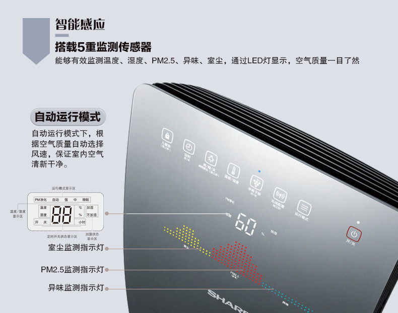 夏普的净化器就是高大上,外观是所有净化器里最好看的!而且数值都很大,所以果断下手!该有的功能全有了!比那些又贵又没有加湿的好多了