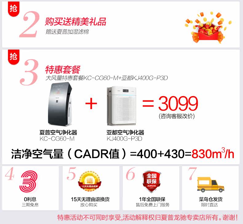 (72)[夏普荣拓专卖店空气净化,氧吧]夏普空气净化器家用W38月销量99件仅售2299元