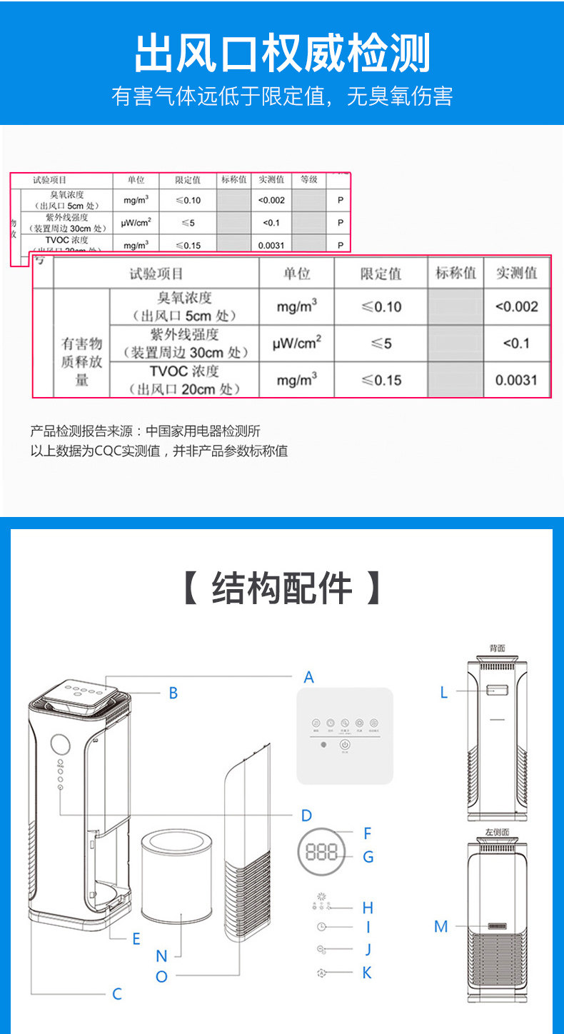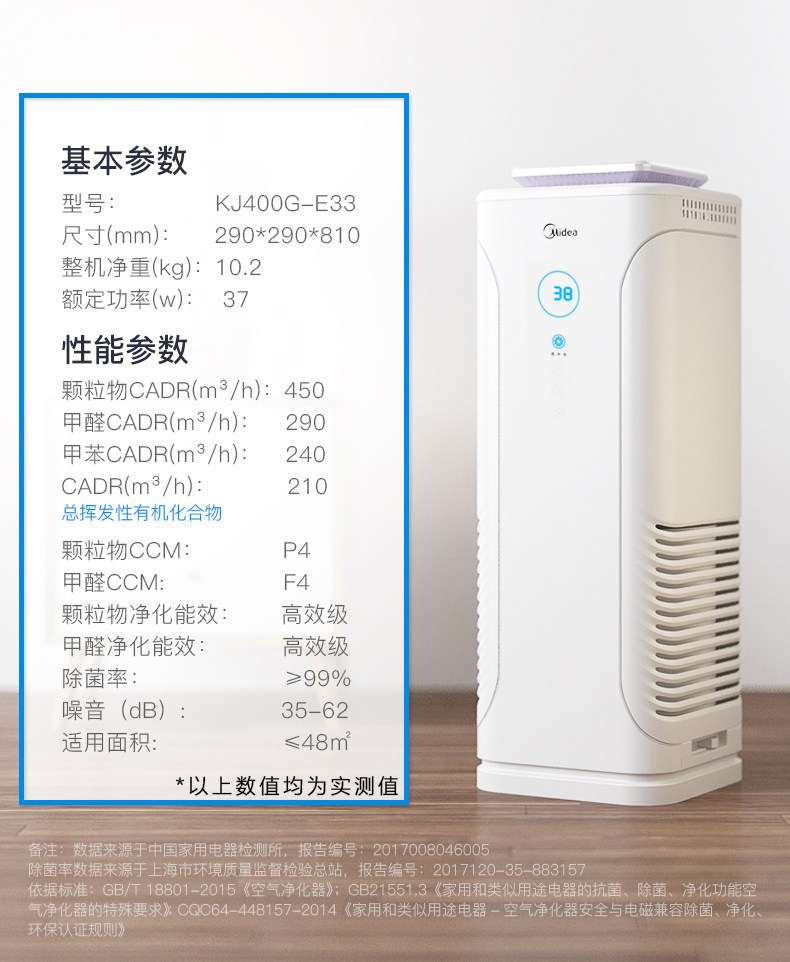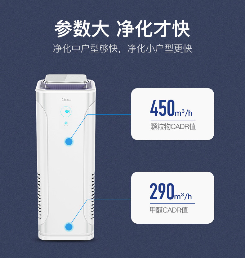 • 空气净化器风量:900立方米/小时 51-150 立方米/小时