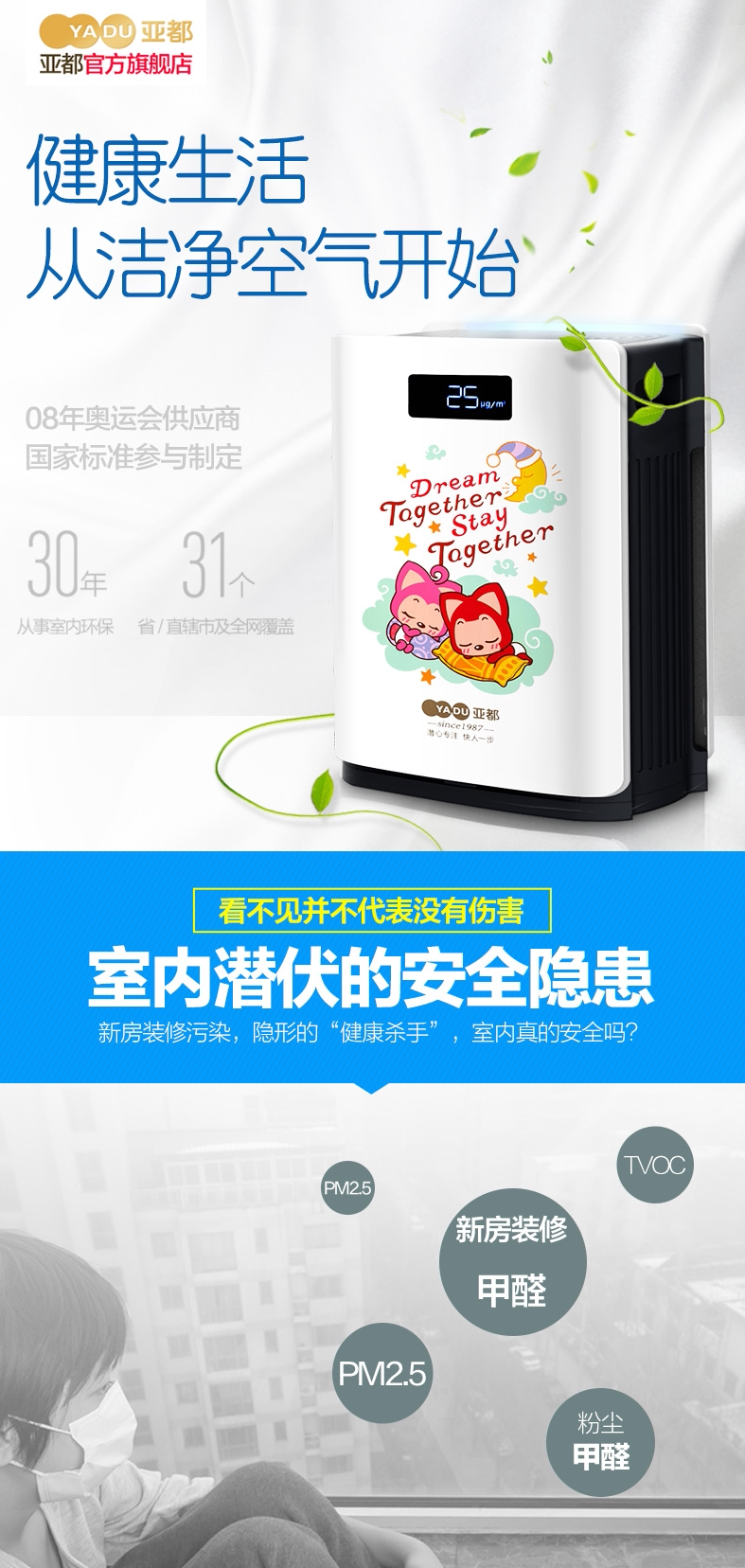 亚都静音空气净化器家用卧室智能杀菌除甲醛雾霾粉尘PM2.5二手烟