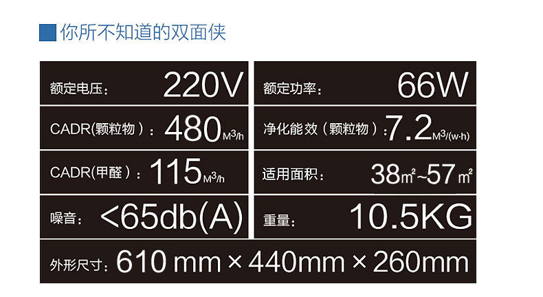 • 甲醛CADR值:115立方米/小时