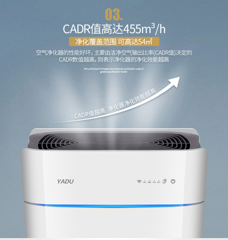 • 甲醛CADR值:90立方米/小时