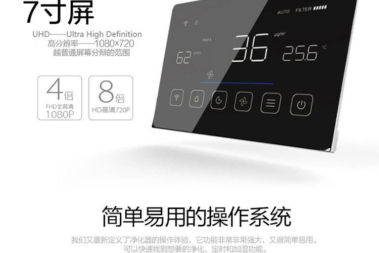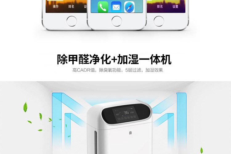 • 功能:除花粉除颗粒物除甲醛除烟除尘杀菌加湿除雾霾