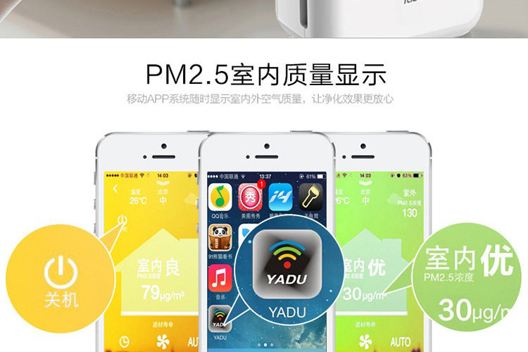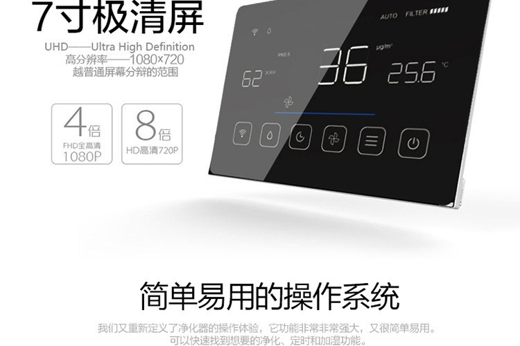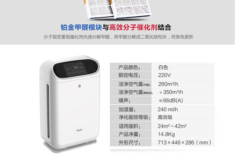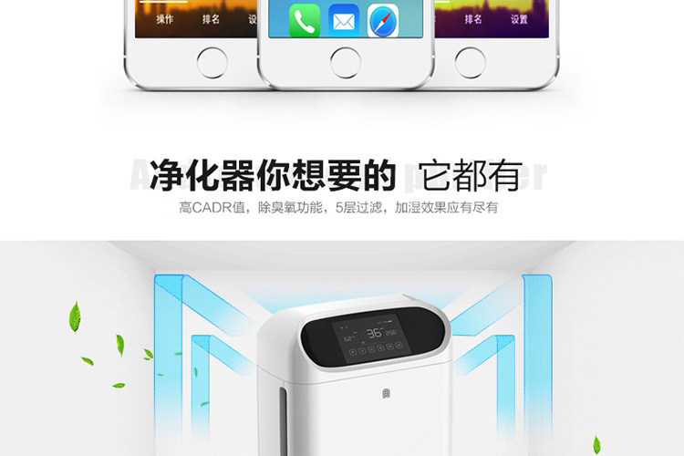 • 功能:除花粉 除颗粒物 除甲醛 除烟除尘 杀菌 加湿 除雾霾