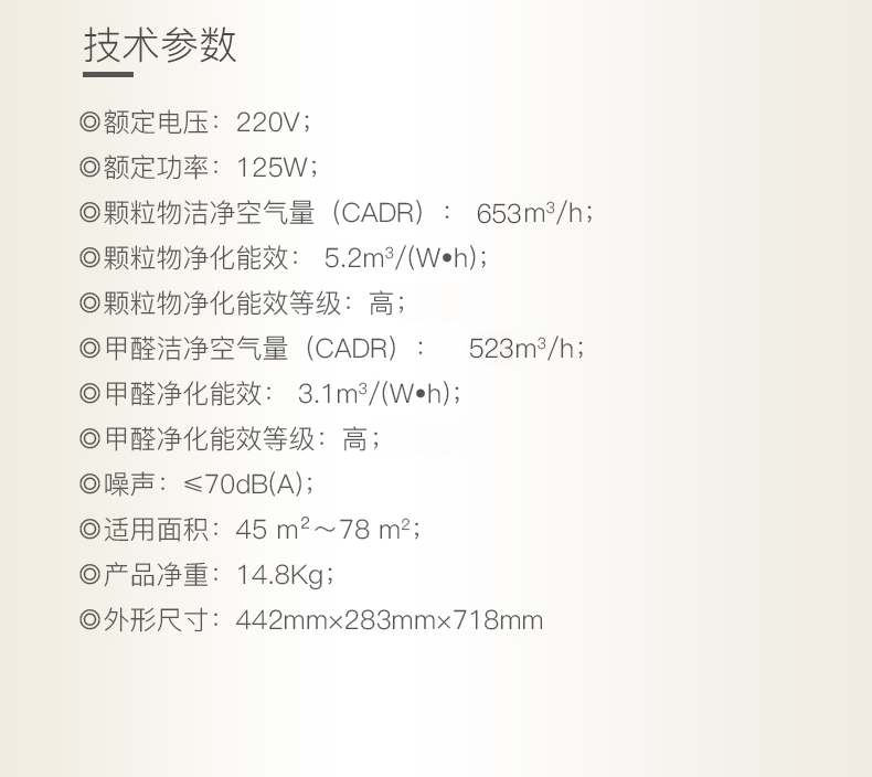 • 功能:定时除花粉除颗粒物除甲醛除烟除尘杀菌除雾霾除菌