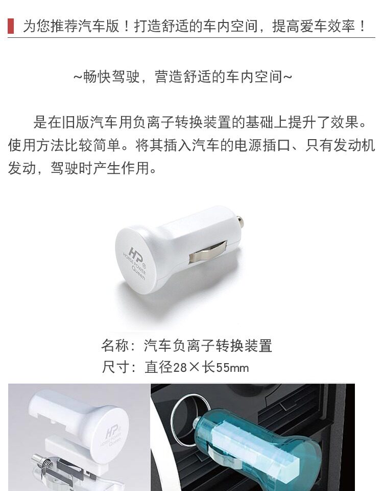 • 颜色分类:降低电脑辐射 负离子转换装置 汽车负离子转换装置