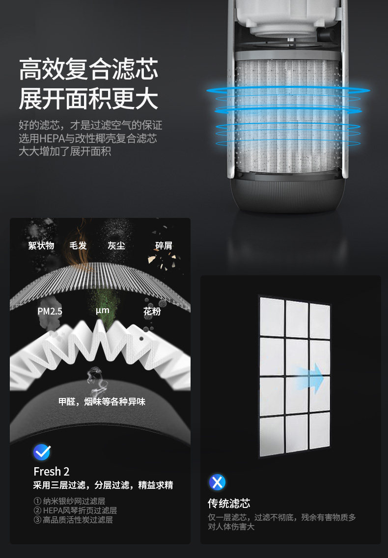 • 净化原理:HEPA滤网活性炭负离子静电吸附