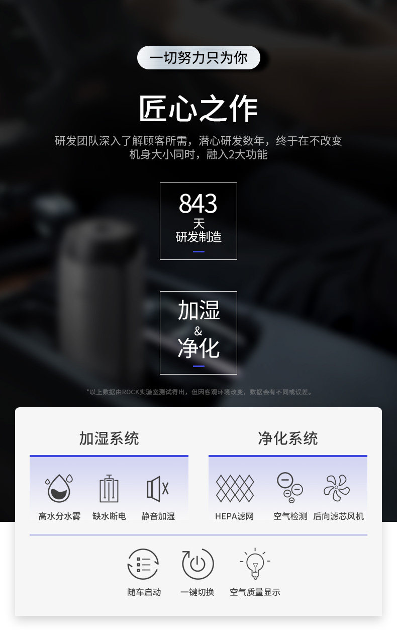 [rock旗舰店车用氧吧,空气净化器]ROCK车载空气净化器加湿器汽车用车月销量22件仅售359元