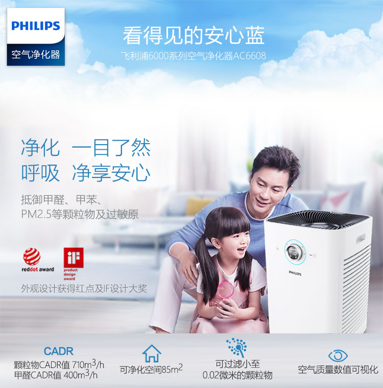 【自营】飞利浦空气净化器AC6608家用去除雾霾二手烟新房除甲醛