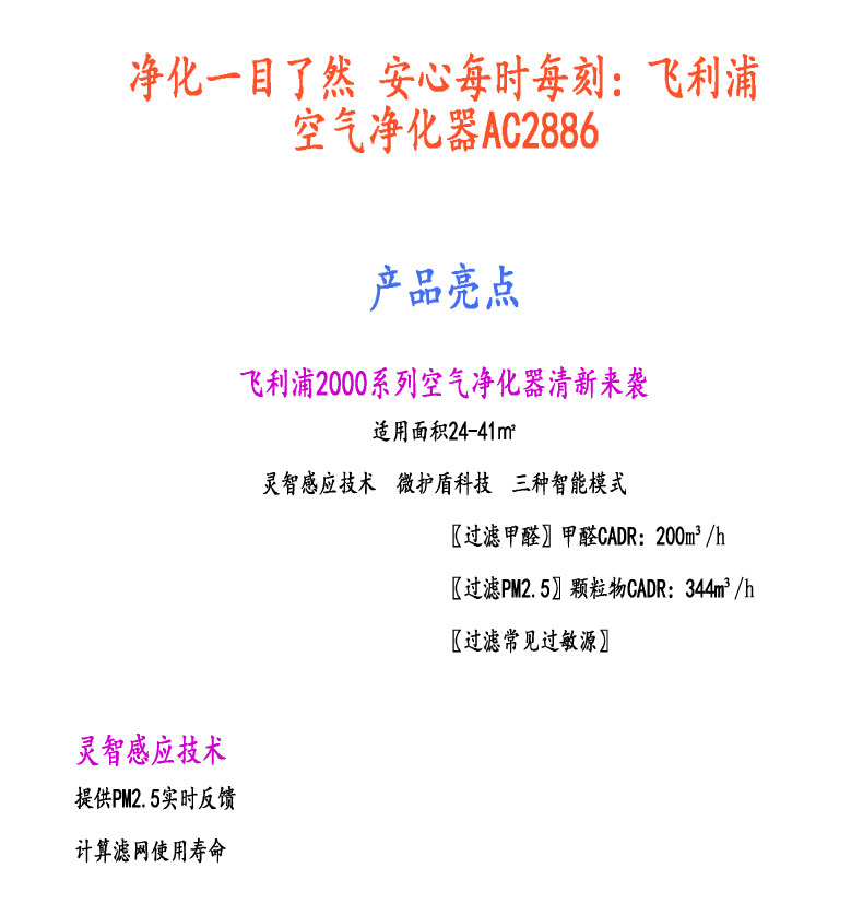 Philips/飞利浦 AC2888空气净化器AC2886家用除甲醛办公室除PM2.5