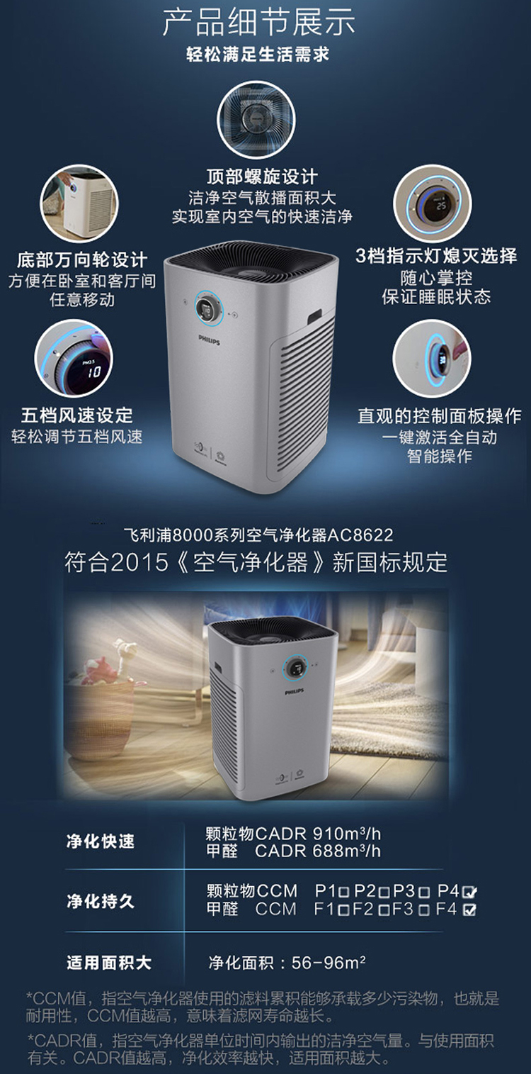 采购2台公司用的,很不错,和店里看到的产品一样的,比实体店便宜好多,买回来办公室就用上了,看着显示数字变化,室内空气质量立马提升很多,办公室挺大的,看来效率还不错,声音也不大,外观很好看,喜欢!给好评啦