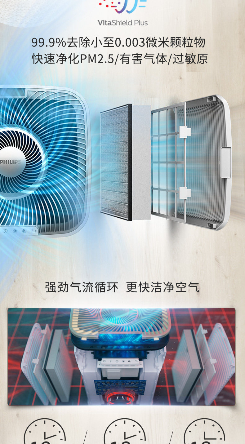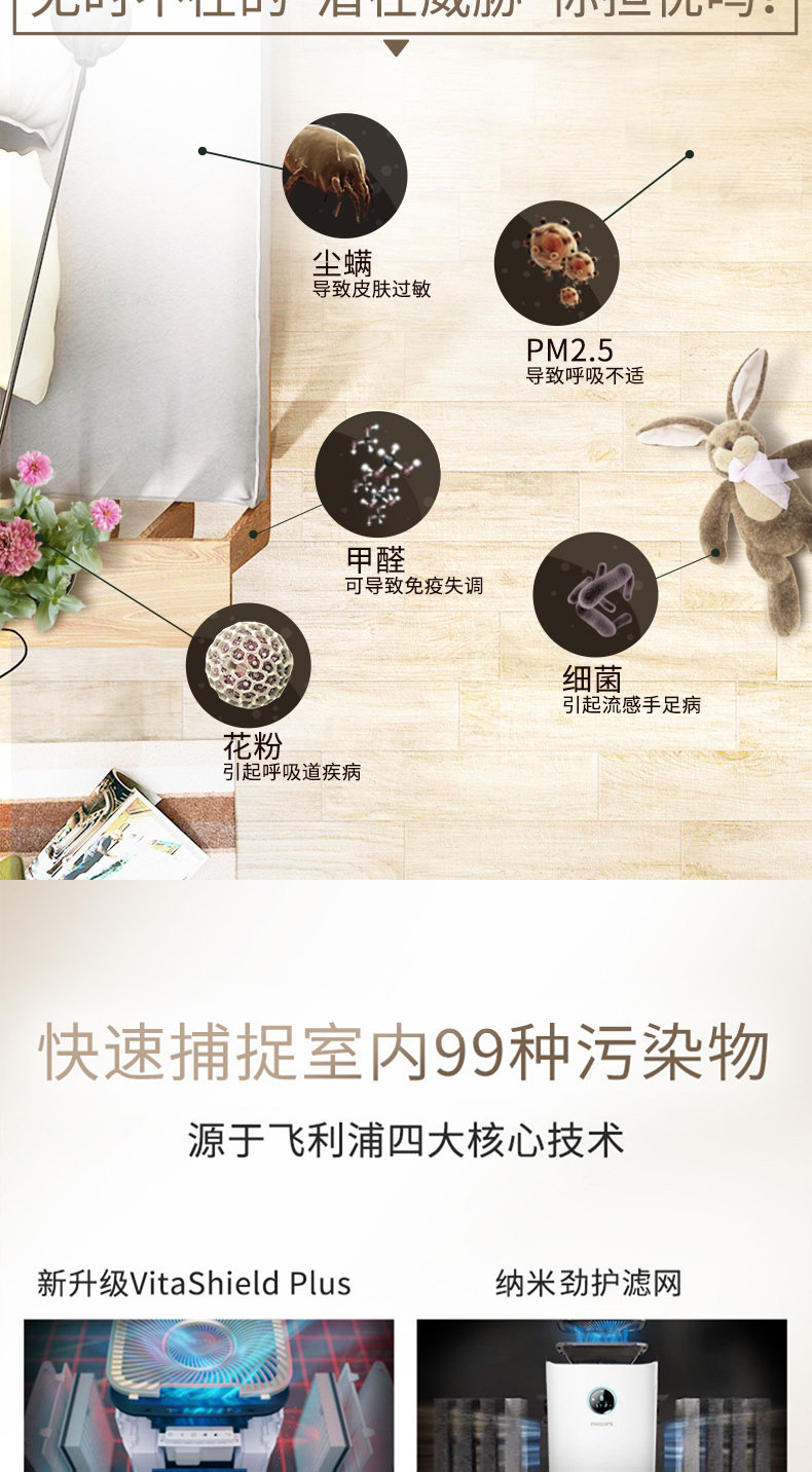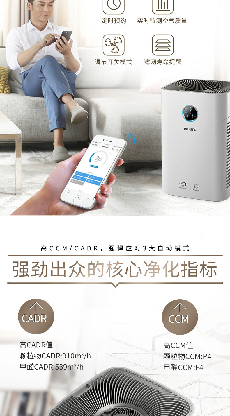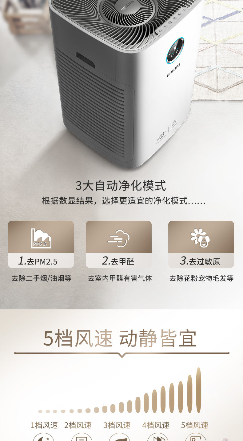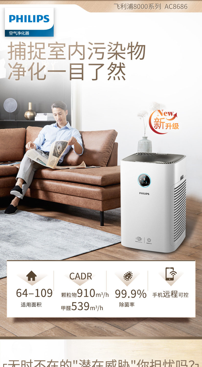 飞利浦空气净化器家用除甲醛过敏原二手烟尘智能净化机AC8686