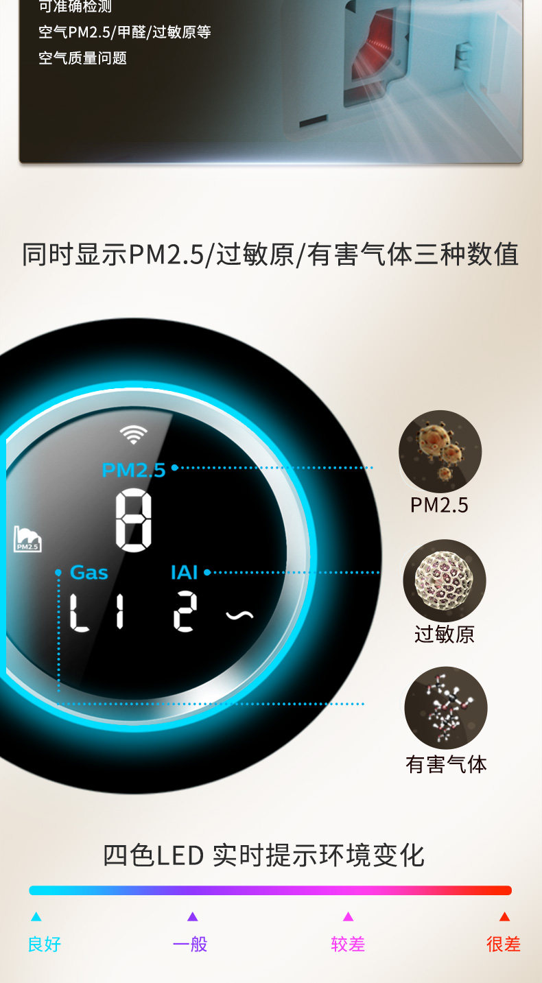 • 功能:除VOC除花粉除颗粒物除甲醛除烟除尘