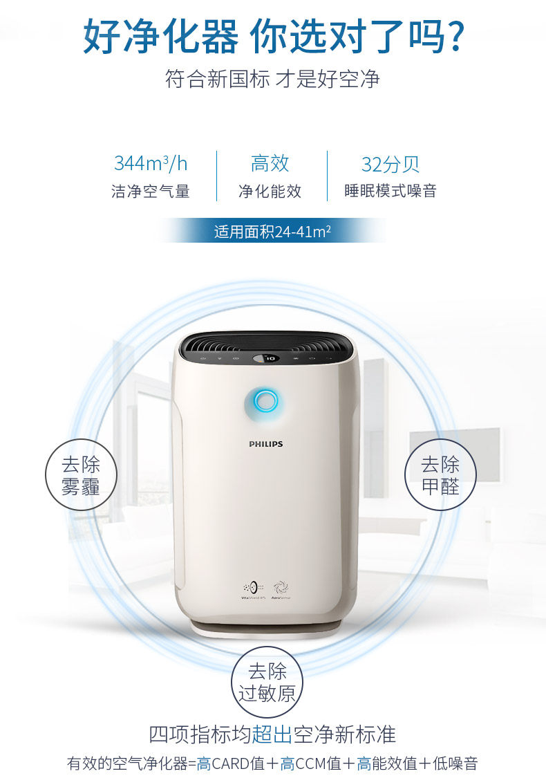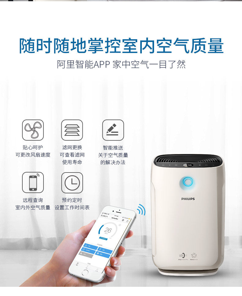 [飞利浦润氏专卖店空气净化,氧吧]飞利浦空气净化器家用卧室除甲醛雾霾P月销量1件仅售2099元