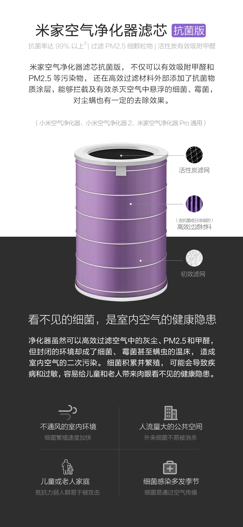小米空气净化器滤芯1代2代pro通用原装滤芯除甲醛增强版抗菌版